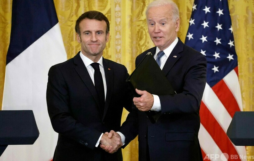 バイデン氏は訪米中のエマニュエル・マクロン(Emmanuel Macron)仏大統領との共同会見で、プーチン氏と接触する予定は当面ないが、対話の窓は開かれていると述べた。