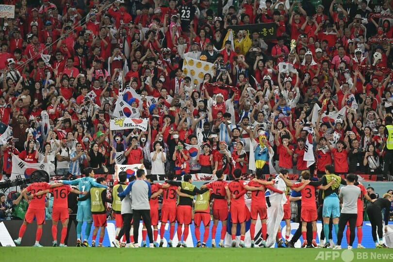 迎えた91分、韓国は主将の孫興民(Son Heung-min、ソン・フンミン)がドリブルで駆け上がりラストパスを送ると、途中出場の黄がゴール。そのまま試合終了の笛を迎えると、孫はピッチに倒れ込み涙を流した。韓国の選手たちは円陣を組み、グループのもう一試合のガーナ対ウルグアイ戦をスマートフォンで観戦。16強入りが確定すると歓喜に沸き、ファンのいるゴール裏へダッシュした。