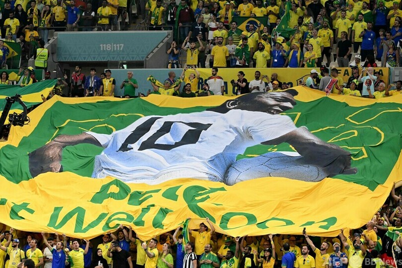 現在W杯(2022 World Cup)が行われているカタールでは、選手がペレ氏へのサポートの姿勢を示し、フランス代表のキリアン・エムバペ(Kylian Mbappe)はツイッター(Twitter)に「王様に祈りを」と投稿した。(c)AFP