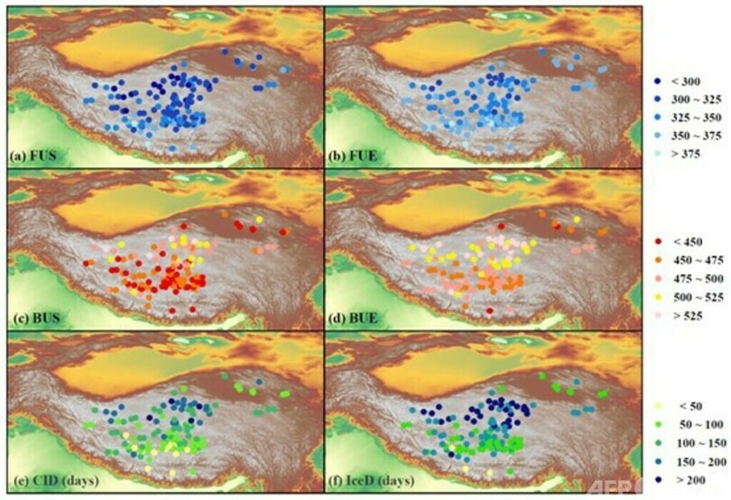 青海チベット高原にある132の湖の約40年間の結氷・融氷日データ発表