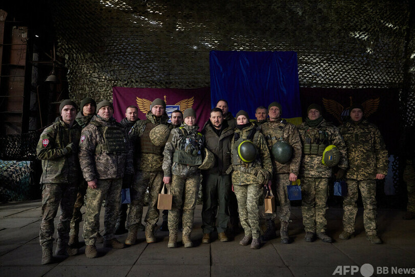【12月6日 AFP】(写真追加)ウクライナのウォロディミル・ゼレンスキー(Volodymyr Zelensky)大統領は6日、東部ドネツク(Donetsk)州の前線で、ロシア軍による攻撃が数か月にわたり続いている都市スラビャンスク(Slavyansk)を訪問した。大統領府が発表した。