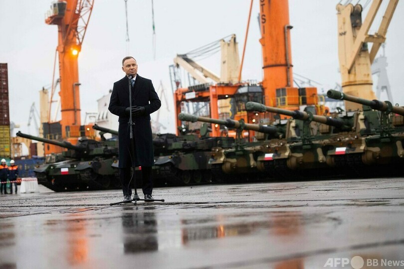 ニュース 政治・経済 ウクライナ危機 ポーランド、韓国から購入の戦車と自走砲を受領 2022年12月6日 23:18 発信地:グディニア/ポーランド [ ポーランド ヨーロッパ 韓国 韓国・北朝鮮 ウクライナ ロシア ロシア・CIS ] このニュースをシェア ‹ › ❮ 1/16 ❯ ポーランド・グディニアで、韓国から戦車と自走砲を受領しスピーチを行うアンジェイ・ドゥダ大統領(2022年12月6日撮影)。(c)MATEUSZ SLODKOWSKI / AFP 画像作成中 ! 【12月6日 AFP】ポーランドは6日、韓国から購入した戦車と自走砲を受領した。 ロシア、ウクライナ両国と国境を接しているポーランドは、欧州連合(EU)と北大西洋条約機構(NATO)に加盟している。ロシアのウクライナ侵攻開始以降、軍備の増強を進めている。(c)AFP 特集:ウクライナ危機 ロシアがウクライナに侵攻、世界は東西冷戦終結後最大の危機に直面している。 政治・経済 一覧へ> メディア・報道関係・法人の方向け 写真・動画 購入のお問合せ>
