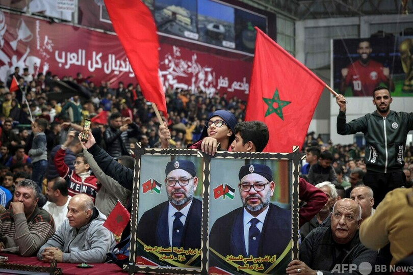 スペイン撃破のモロッコ、パレスチナ旗で喜ぶ カタールW杯