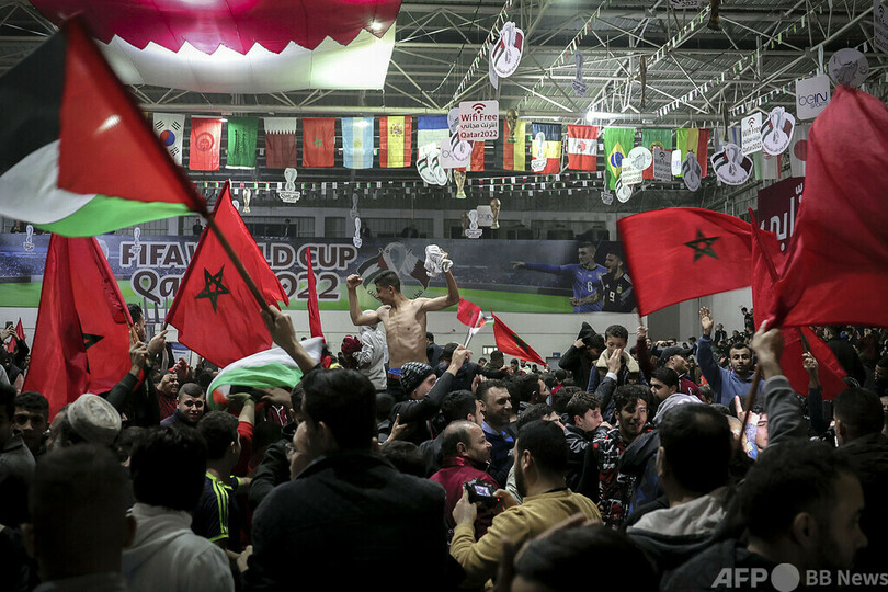 スペイン撃破のモロッコ、パレスチナ旗で喜ぶ カタールW杯