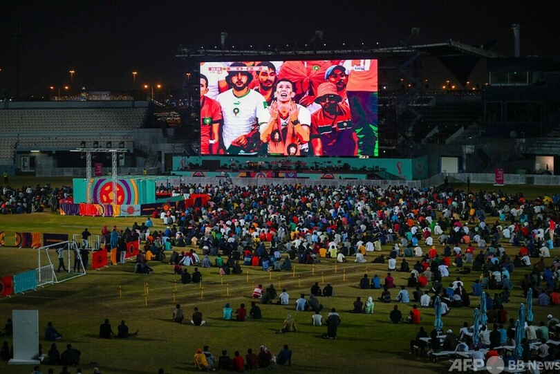 【12月7日 AFP】カタールの移民労働者たちが6日、ドーハ郊外にあるアジアンタウン・クリケットスタジアム(Asian Town Cricket Stadium)で、サッカーW杯カタール大会(2022 World Cup)の決勝トーナメント1回戦、モロッコ対スペイン戦を観戦した。
