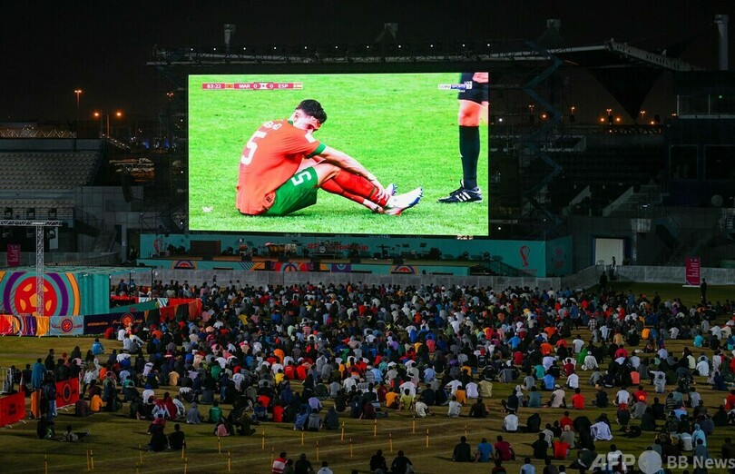 【12月7日 AFP】カタールの移民労働者たちが6日、ドーハ郊外にあるアジアンタウン・クリケットスタジアム(Asian Town Cricket Stadium)で、サッカーW杯カタール大会(2022 World Cup)の決勝トーナメント1回戦、モロッコ対スペイン戦を観戦した。