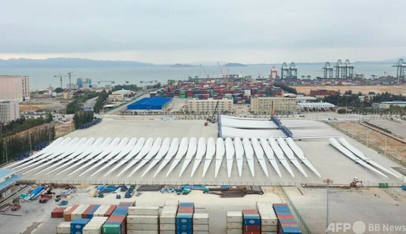 今回輸出されたブレードは長さ108メートル、重量は100トンで、現在世界で量産されているものとしては最長です。福建省ではここ数年、洋上風力発電産業に継続的に力を入れており、その中の福建三峡海上風電産業パークでは風力発電機やその構造部品、最終組み立て、ブレード生産などが完備した産業チェーンが形成されています。今年に入り、13.6メガワットや16メガワットなどの大容量海上風力発電ユニットが相次いでラインオフしています。(c)CGTN Japanese/AFPBB News