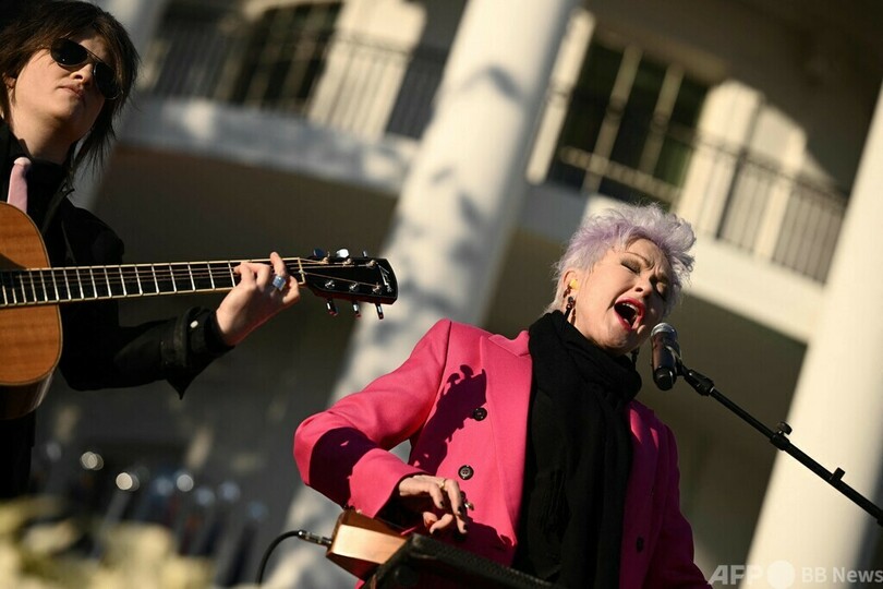 性的少数者(LGBTQ)の権利擁護を訴えてきた歌手シンディ・ローパー(Cyndi Lauper)さんも参加し、パフォーマンスを披露した。