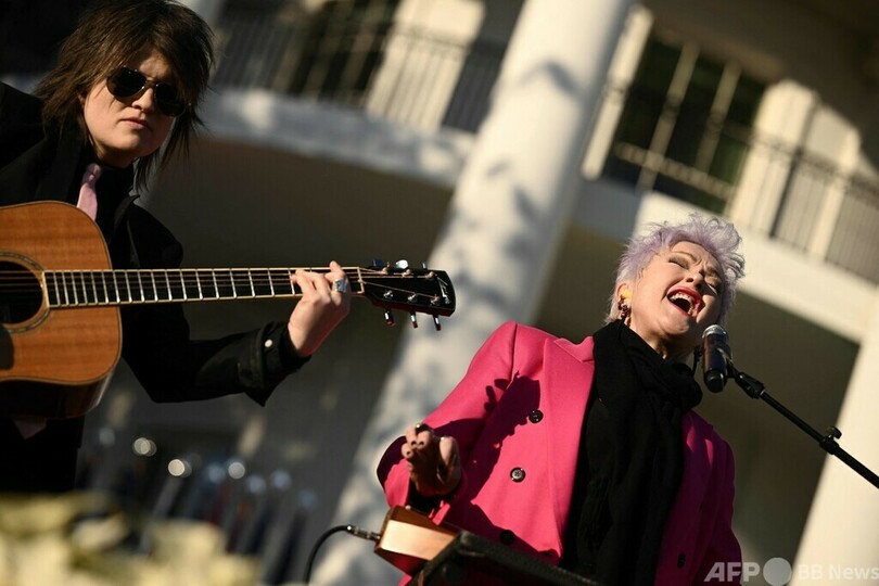 性的少数者(LGBTQ)の権利擁護を訴えてきた歌手シンディ・ローパー(Cyndi Lauper)さんも参加し、パフォーマンスを披露した。