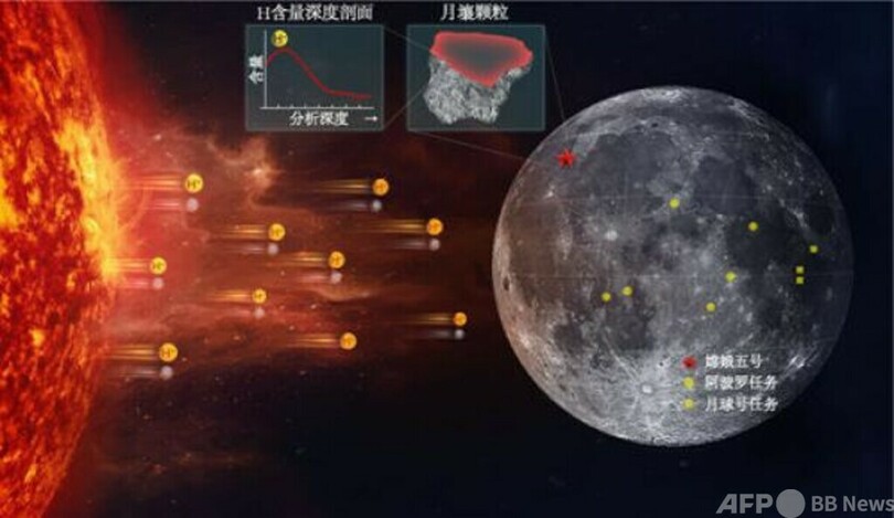 研究チームは「嫦娥5号」の月面サンプル2点から、ケイ酸塩鉱物(かんらん石、輝石、長石)とガラスなどの17個の月面表層土の粒子を選び、ナノスケール二次イオン質量分析計(NanoSIMS)を使い、さらに最新の超高空間分解能の断面分析技術を用いて水素含有量と同位体の実験と分析を実施しました。その結果、「嫦娥5号」のサンプルの粒子の最表層から0.1マイクロメートルの部分の水分量が0.7%に達していることが判明しました。研究者らは、水素と水素の同位体である重水素の比率の分析により、これらの水分は太陽風によって高速で月面に降り注がれたことに起因することを証明しました。