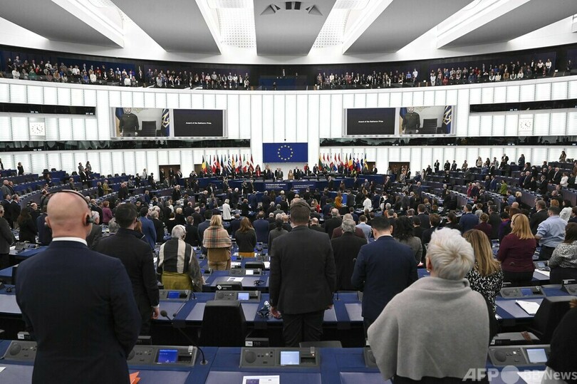 【12月14日 AFP】ウクライナのウォロディミル・ゼレンスキー(Volodymyr Zelensky)大統領は14日、欧州連合(EU)の最高人権賞「サハロフ賞(Sakharov Prize)」の授賞式にオンライン形式で出席し、ロシア指導部を「侵略の罪」で裁く法廷の迅速な設置に協力するよう欧州に呼び掛けた。