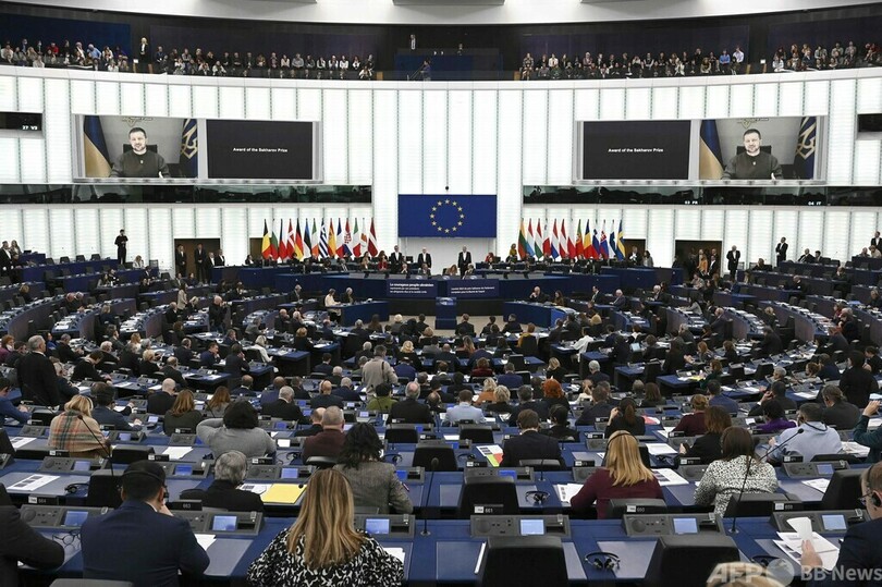 【12月14日 AFP】ウクライナのウォロディミル・ゼレンスキー(Volodymyr Zelensky)大統領は14日、欧州連合(EU)の最高人権賞「サハロフ賞(Sakharov Prize)」の授賞式にオンライン形式で出席し、ロシア指導部を「侵略の罪」で裁く法廷の迅速な設置に協力するよう欧州に呼び掛けた。