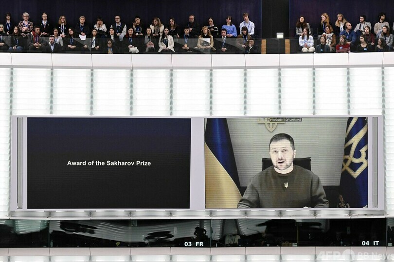 【12月14日 AFP】ウクライナのウォロディミル・ゼレンスキー(Volodymyr Zelensky)大統領は14日、欧州連合(EU)の最高人権賞「サハロフ賞(Sakharov Prize)」の授賞式にオンライン形式で出席し、ロシア指導部を「侵略の罪」で裁く法廷の迅速な設置に協力するよう欧州に呼び掛けた。
