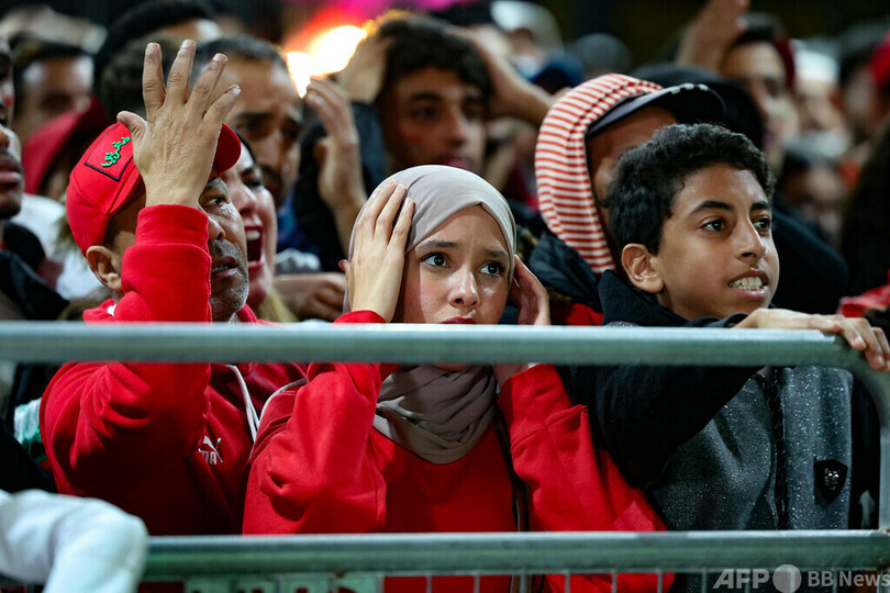 同日の午後、首都ラバトでは激しい雨が降り、アフリカ勢、アラブ勢として初の4強入りを果たしたモロッコを決勝に手が届くところにまで導いた、これまでの歴史的勝利の熱狂とは程遠い雰囲気で、車のクラクションや太鼓をたたく音も控えめなものだった。