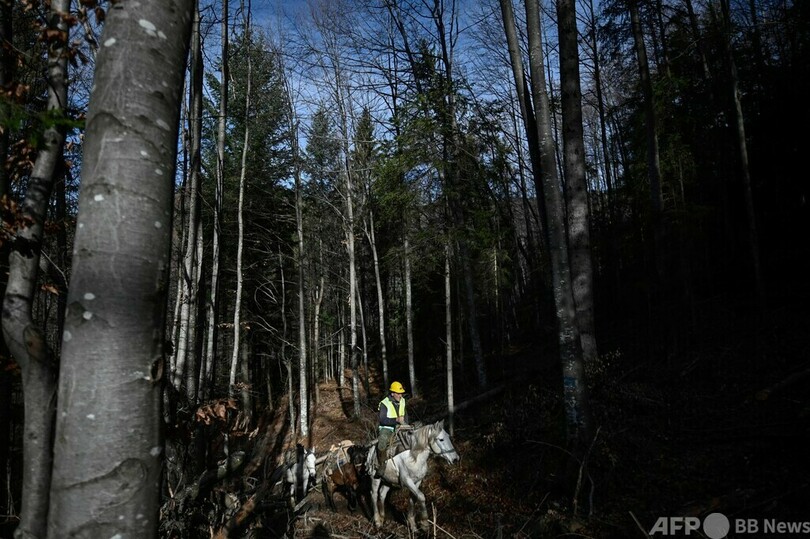 【12月15日 AFP】ブルガリアの冬はすぐそこまで来ているが、北部の山々の森には今もチェーンソーの音が響いている。切り出されたばかりのまきを運ぶため、馬たちはすぐそばに待機している。