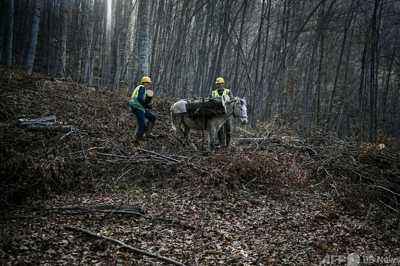 【12月15日 AFP】ブルガリアの冬はすぐそこまで来ているが、北部の山々の森には今もチェーンソーの音が響いている。切り出されたばかりのまきを運ぶため、馬たちはすぐそばに待機している。