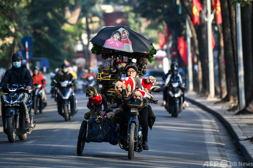 トゥクトゥクに犬たちを乗せたクイさんの姿はハノイの名物となっている。
