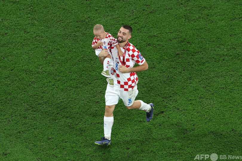 【12月18日 AFP】17日に行われたサッカーW杯カタール大会(2022 World Cup)の3位決定戦で、モロッコに2-1で勝利したクロアチア。試合後には、選手がわが子らと勝利を喜んだ。(c)AFP