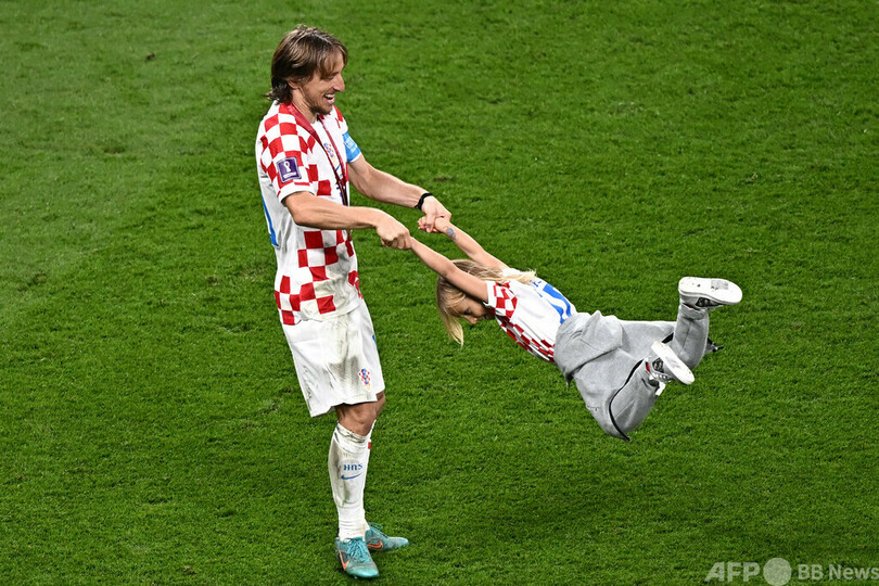 【12月18日 AFP】17日に行われたサッカーW杯カタール大会(2022 World Cup)の3位決定戦で、モロッコに2-1で勝利したクロアチア。試合後には、選手がわが子らと勝利を喜んだ。(c)AFP