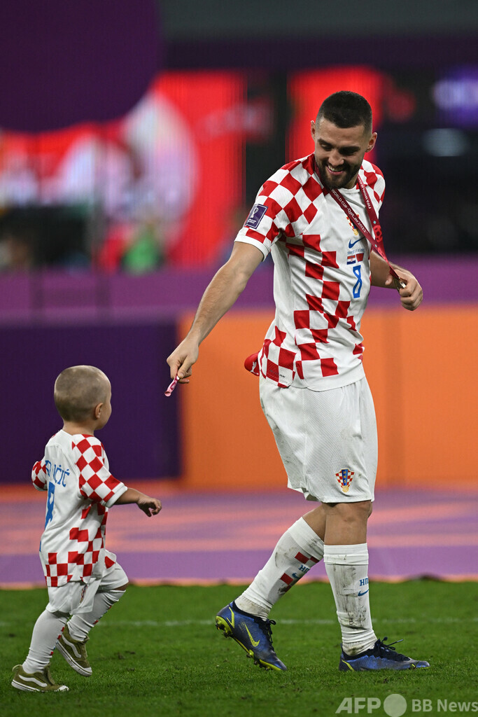 【12月18日 AFP】17日に行われたサッカーW杯カタール大会(2022 World Cup)の3位決定戦で、モロッコに2-1で勝利したクロアチア。試合後には、選手がわが子らと勝利を喜んだ。(c)AFP