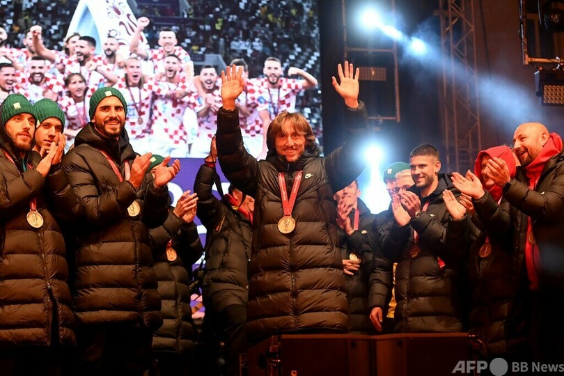 【12月19日 AFP】サッカーW杯カタール大会(2022 World Cup)で3位に入ったクロアチア代表が18日、母国へ戻り、首都ザグレブのファンの前で凱旋(がいせん)パレードやセレモニーを行った。