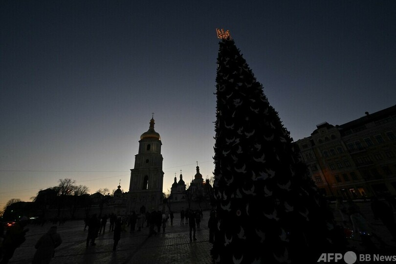 クリチコ市長は「ロシア人は市民から普通の生活を奪おうとしているが、クリスマスと新年という一年で最も大事な祝日を子どもたちから奪わせるわけにはいかない」と強調。これは「不屈のウクライナを象徴するクリスマスツリーだ」と述べた。(c)AFP