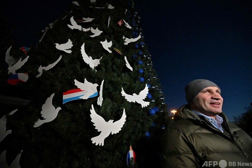 クリチコ市長は「ロシア人は市民から普通の生活を奪おうとしているが、クリスマスと新年という一年で最も大事な祝日を子どもたちから奪わせるわけにはいかない」と強調。これは「不屈のウクライナを象徴するクリスマスツリーだ」と述べた。(c)AFP