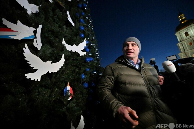 クリチコ市長は「ロシア人は市民から普通の生活を奪おうとしているが、クリスマスと新年という一年で最も大事な祝日を子どもたちから奪わせるわけにはいかない」と強調。これは「不屈のウクライナを象徴するクリスマスツリーだ」と述べた。(c)AFP