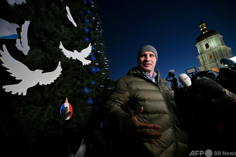 クリチコ市長は「ロシア人は市民から普通の生活を奪おうとしているが、クリスマスと新年という一年で最も大事な祝日を子どもたちから奪わせるわけにはいかない」と強調。これは「不屈のウクライナを象徴するクリスマスツリーだ」と述べた。(c)AFP