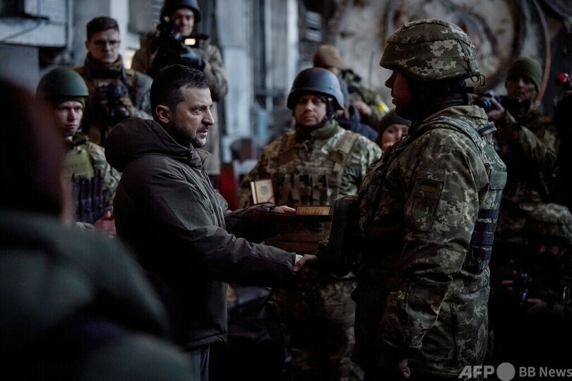 【12月20日 AFP】(写真追加)ウクライナのウォロディミル・ゼレンスキー(Volodymyr Zelensky)大統領は20日、ロシアによる侵攻で主戦場となっている東部前線のバフムート(Bakhmut)を訪問した。大統領府が発表した。