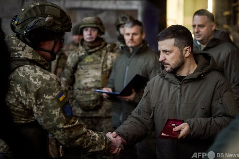 【12月20日 AFP】(写真追加)ウクライナのウォロディミル・ゼレンスキー(Volodymyr Zelensky)大統領は20日、ロシアによる侵攻で主戦場となっている東部前線のバフムート(Bakhmut)を訪問した。大統領府が発表した。