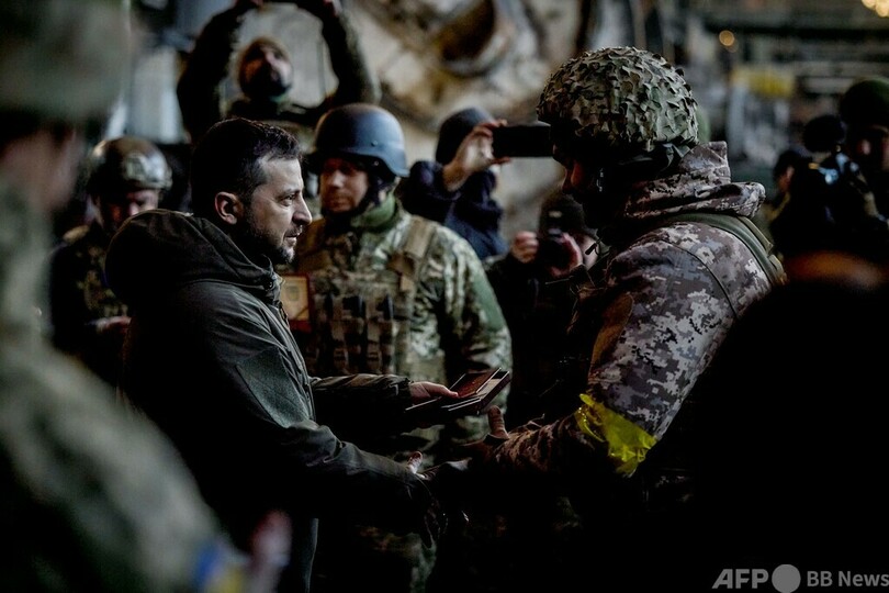 【12月20日 AFP】(写真追加)ウクライナのウォロディミル・ゼレンスキー(Volodymyr Zelensky)大統領は20日、ロシアによる侵攻で主戦場となっている東部前線のバフムート(Bakhmut)を訪問した。大統領府が発表した。
