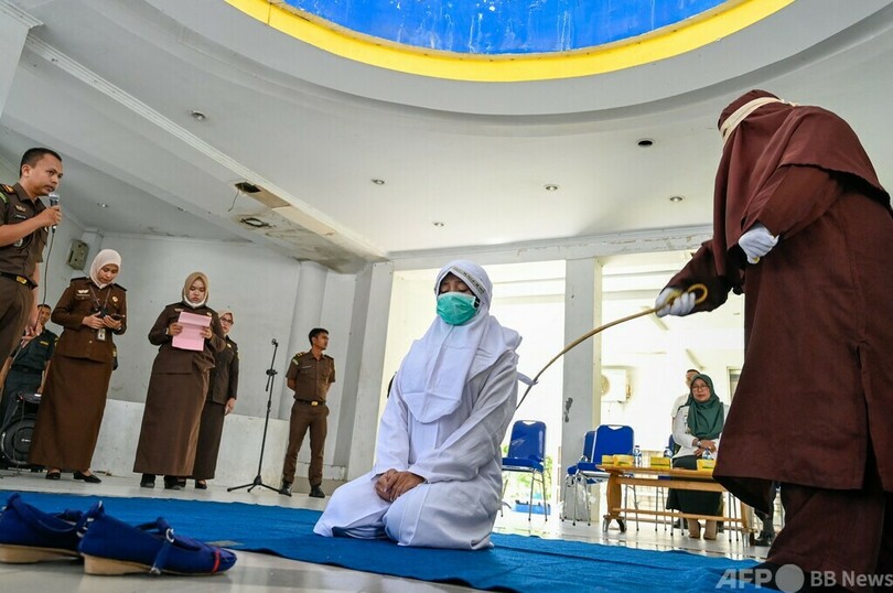 インドネシアで公開むち打ち刑 男女の「接近」や賭博でイスラム法違反