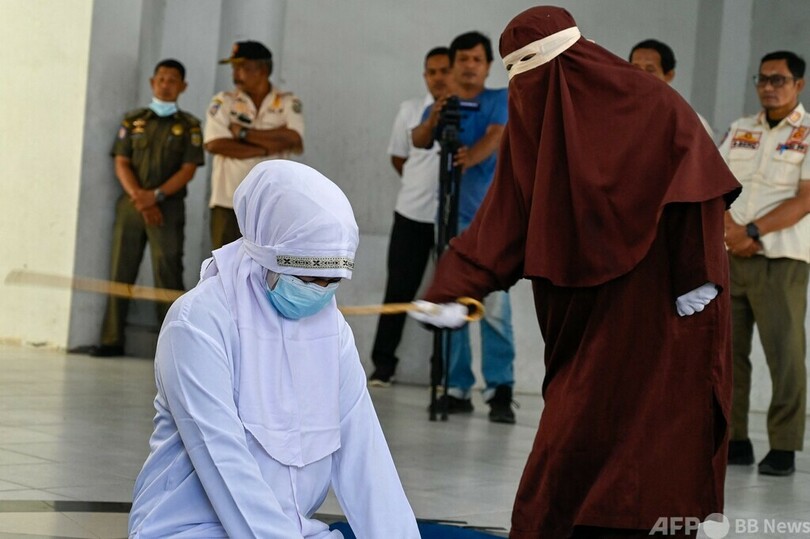 インドネシアで公開むち打ち刑 男女の「接近」や賭博でイスラム法違反