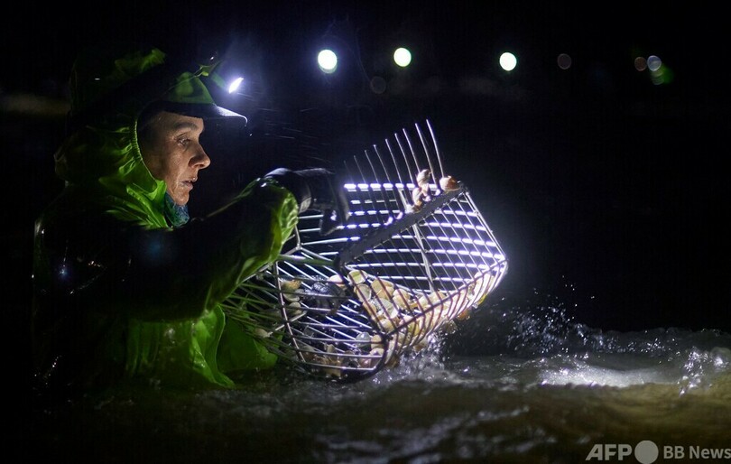 【12月26日 AFP】スペイン北西部ガリシア(Galicia)地方のノイア(Noia)入り江で、食用の二枚貝をレーキで集める「マリスカドーラ」。