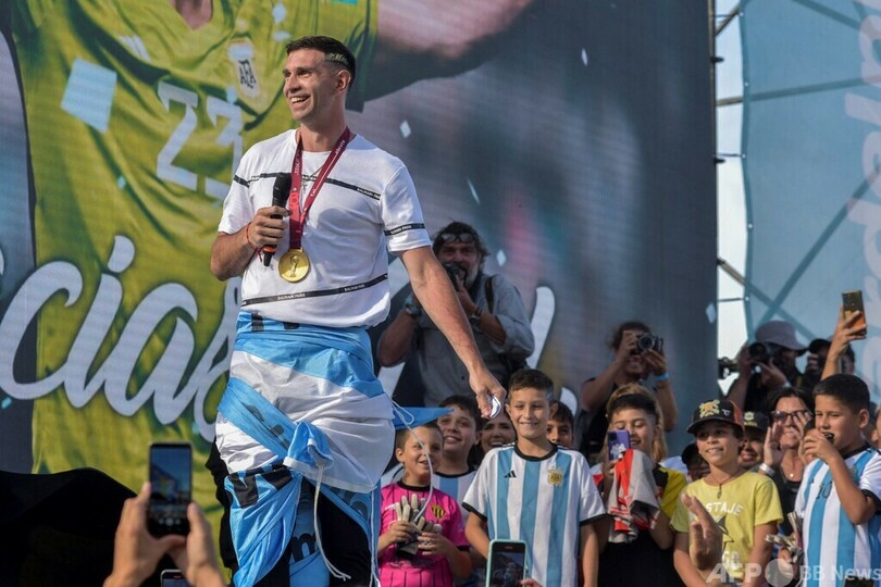 【12月24日 AFP】サッカーW杯カタール大会(2022 World Cup)を制したアルゼンチン代表のGKエミリアーノ・マルティネス(Emiliano Martinez)が22日、首都ブエノスアイレス南部の出身地マルデルプラタ(Mar del Plata)に凱旋(がいせん)し、10万人と推定される地元住民の歓迎を受けた。