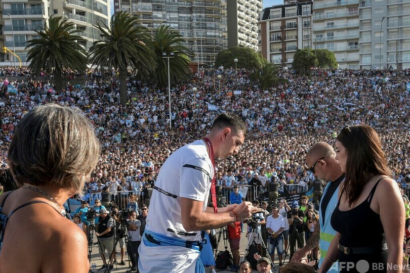 【12月24日 AFP】サッカーW杯カタール大会(2022 World Cup)を制したアルゼンチン代表のGKエミリアーノ・マルティネス(Emiliano Martinez)が22日、首都ブエノスアイレス南部の出身地マルデルプラタ(Mar del Plata)に凱旋(がいせん)し、10万人と推定される地元住民の歓迎を受けた。