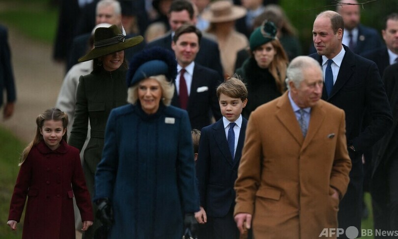 チャールズ国王は新型コロナウイルスが大流行する前の伝統にのっとり、今年のクリスマスはイングランド東部サンドリンガム(Sandringham)の別邸で過ごしており、同地での礼拝にはカミラ王妃(Queen Consort Camilla)、ウィリアム皇太子(Prince William)一家と共に参加した。(c)AFP/Joe JACKSON