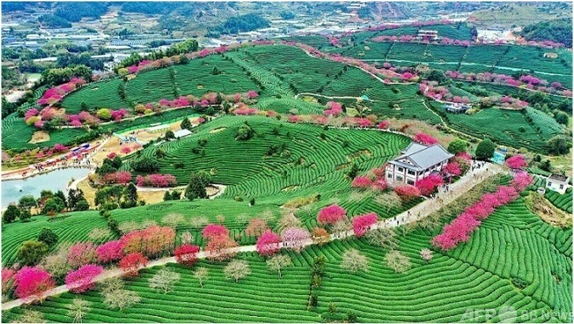 生態茶園の建設は、関連産業の発展もけん引した。「茶園に植えられた桜は、生態状況を改善しただけでなく、茶園の景観を豊かにし、茶旅の融合を可能にした」。茶農家の方舟(Fang Zhou)さんは、茶園を公園に変える願いが、少しずつ実現しつつあると語った。(c)People’s Daily/AFPBB News