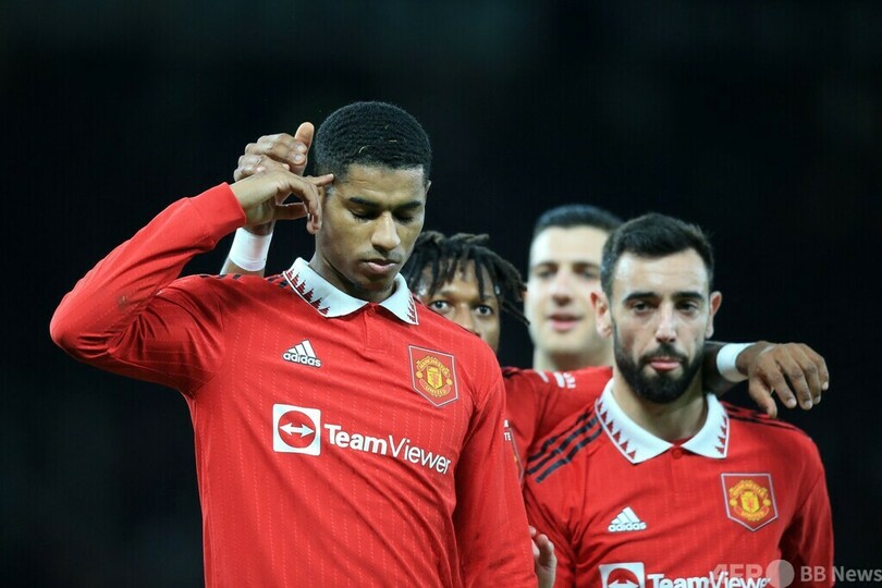 ラシュフォードはW杯カタール大会(2022 World Cup)後、公式戦5試合連続のゴール。この日はアントニーの得点をアシストしたほか、自身のクロスから相手のオウンゴールを誘い、マンオブザマッチにも選ばれた。(c)AFP