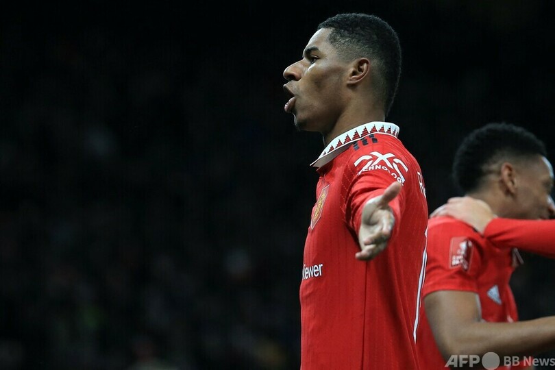 ラシュフォードはW杯カタール大会(2022 World Cup)後、公式戦5試合連続のゴール。この日はアントニーの得点をアシストしたほか、自身のクロスから相手のオウンゴールを誘い、マンオブザマッチにも選ばれた。(c)AFP