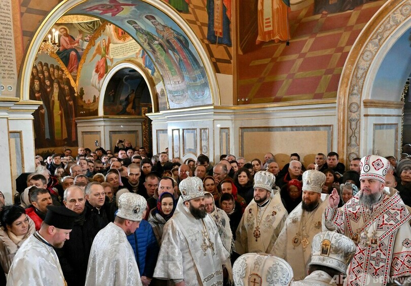 ウクライナの首都キーウでは、11世紀に建立されたキーウ洞窟大修道院(Kyiv Pechersk Lavra)で礼拝が行われ、数百人が参加した。(c)AFP/Daria ANDRIIEVSKA with Robbie COREY-BOULET in Chasiv Yar