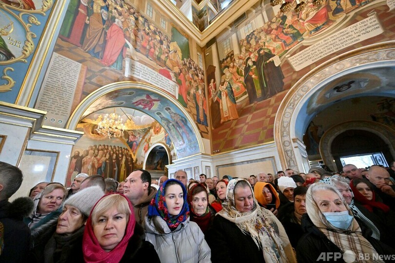 ウクライナの首都キーウでは、11世紀に建立されたキーウ洞窟大修道院(Kyiv Pechersk Lavra)で礼拝が行われ、数百人が参加した。(c)AFP/Daria ANDRIIEVSKA with Robbie COREY-BOULET in Chasiv Yar