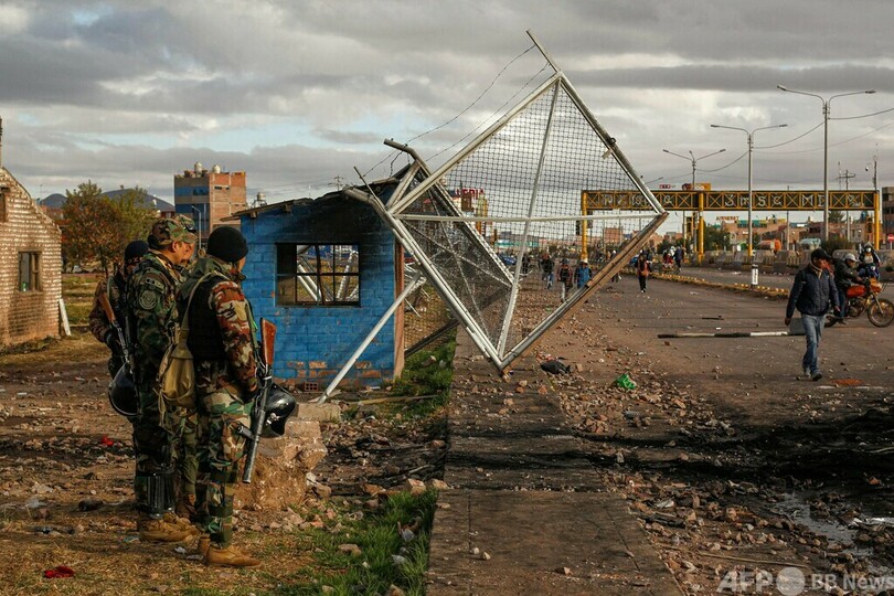 ボリビアと国境を接するフリアカは反政府デモの拠点となっており、4日には無期限ストライキが宣言された。(c)AFP