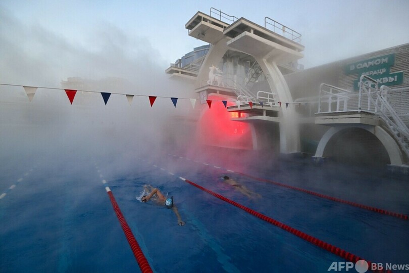 【1月14日 AFP】ロシア・モスクワの屋外プール「チャイカ(Chayka)」で、水泳を楽しむ人の姿が見られた。
