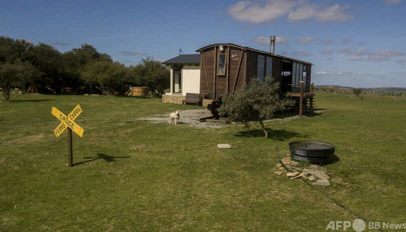 【1月22日 AFP】南米ウルグアイの首都モンテビデオ郊外の農場で、食用に処理されるのを免れた4頭の馬が、のんびりと草を食べている。