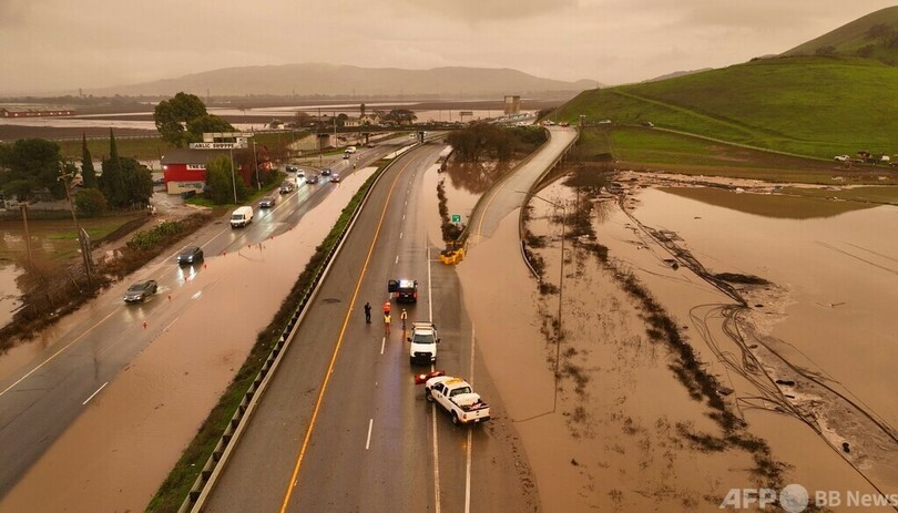 【1月12日 AFP】米カリフォルニア州は相次ぐ嵐に見舞われ、大規模な洪水や土砂崩れなどが発生している。米国立気象局(NWS)は12日、低気圧は北に進む見通しだと発表した。