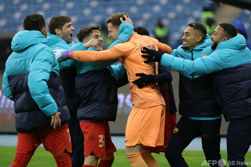 バルセロナは15日の決勝でレアルとの「エル・クラシコ(El Clasico)」に臨む。レアルも11日に同じくPK戦の末にバレンシア(Valencia CF)を退け、決勝へ駒を進めた。バルセロナは、2020年にサウジアラビア開催となり、4チームによる現行フォーマットになってから初のスーパーカップ制覇を目指す。(c)AFP