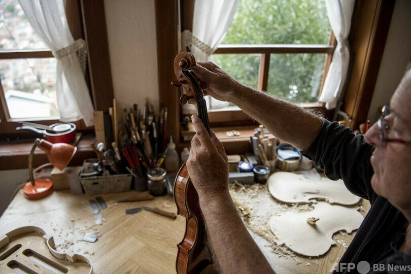 北マケドニアの丘陵地帯にあるベレス(Veles)の町の質素な工房には、ニスや古木の香りが漂う。独学のボグダノスキー氏は、バイオリンを一丁仕上げるのに数か月、時には数年かかることもあるという。