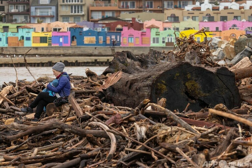 米加州、嵐で各地の海岸に被害 流木も大量漂着